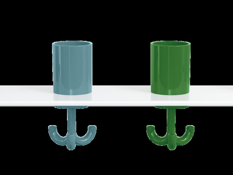 Toothbrush cup rail with hook