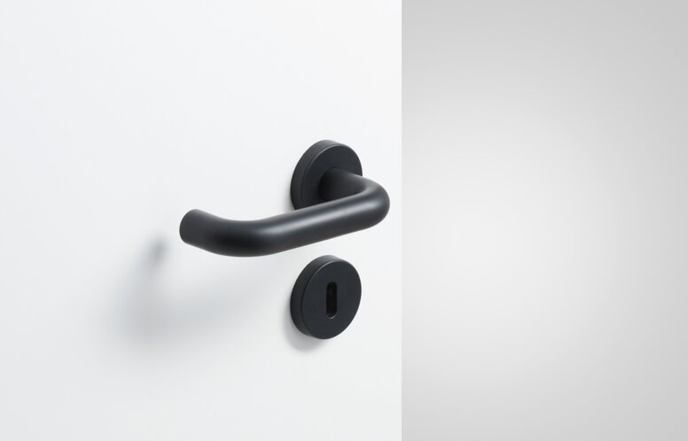 Matt surfaces give lever handles a velvety feel and reduce light reflections, giving them a particularly elegant appearance. System 111 in the matt edition combines these material properties with a carefully coordinated colour palette. Variants such as door lever handles in matt black, matt signal white or matt anthracite grey blend harmoniously into modern architectural concepts and emphasise a clear, minimalist design.