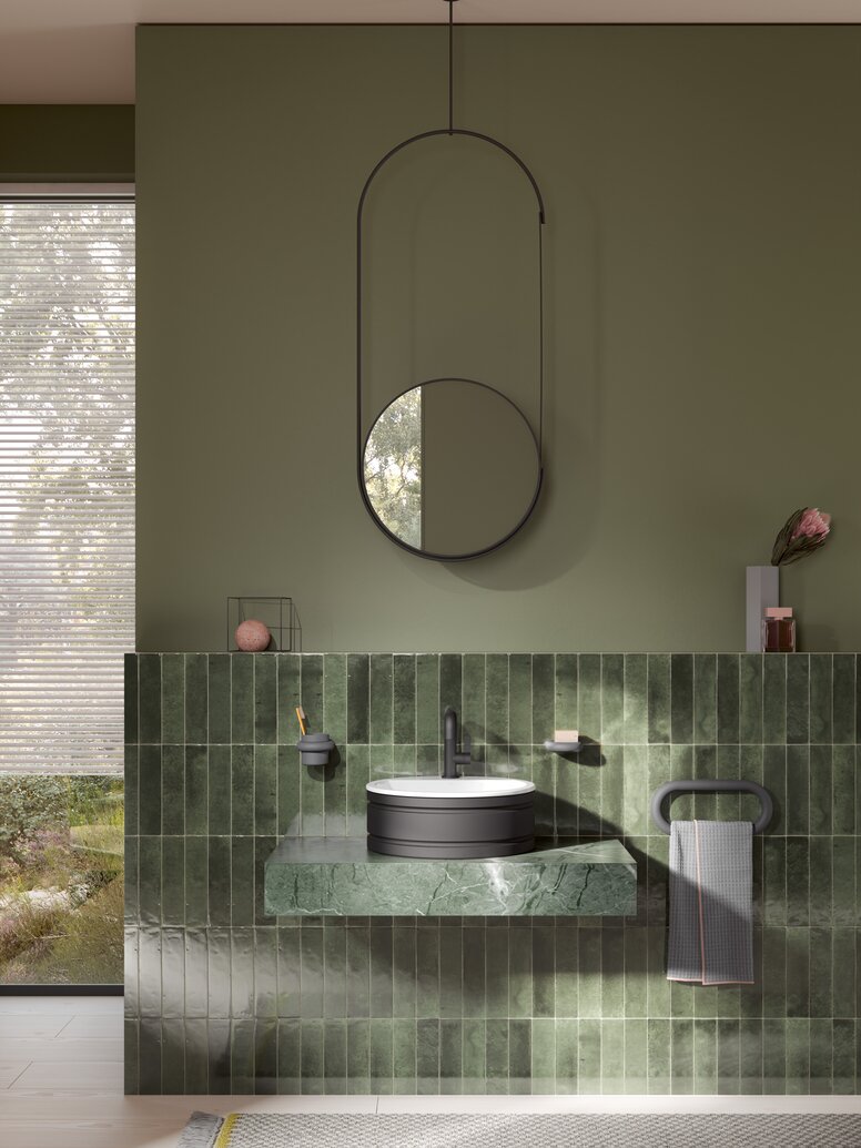 With DUO, HEWI presents a counter-top washbasin for the first time and expands the product range with a solution that picks up on current bathroom trends and plays with colour and finish.